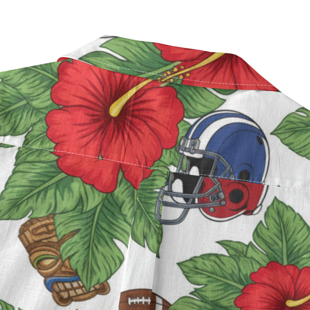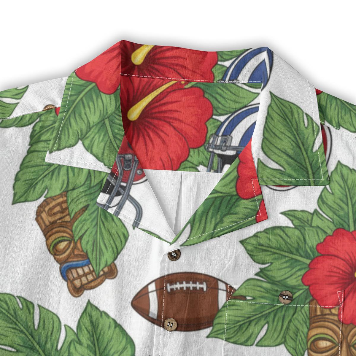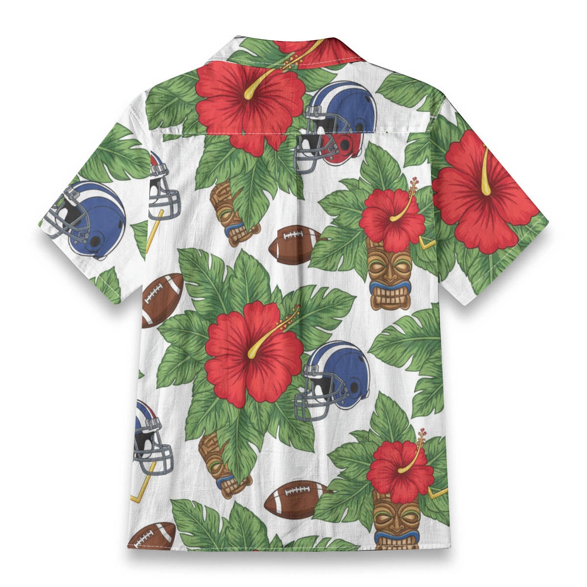 A football helmet and a tiki mask share the same tropical backdrop in a print that mashes up hard-hitting sport with ancient island culture. It sounds like it shouldn't work, but somehow it absolutely does, creating a design that feels bold and original. This one is for someone who takes both game day and island style equally seriously.